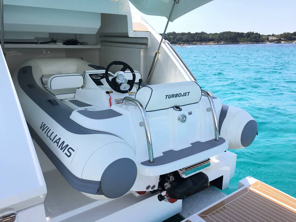 From the lower deck swimming platform guests have access to the main deck aft which comes furnished with a sofa along the stern and an aft-facing sofa, between which there is an elevated table. The foredeck has a broad sunbed where the group can rest in the sunshine and enjoy uninterrupted views. While chartering in the West Mediterranean the luxury charter yacht AAA and her crew of 2 will be sure to satisfy all of your needs and make sure you enjoy your experience.