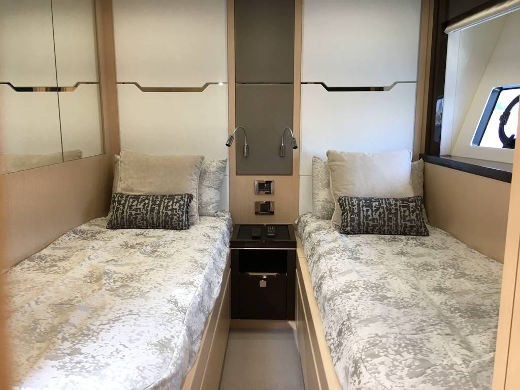 The luxury charter yacht AAA offers accommodation for 6 guests in 3 cabins consisting of a master stateroom with a queen size bed and bathroom facilities including a shower and lavatory. Further guest accommodation is also available in another 2 cabins. AAA also accommodates up to 2 crew on-board to ensure you have a relaxed luxurious charter experience and all of your needs are catered for while on board. The specifications on board the beautifully built 21.7 m Sunseeker launched in 2017 includes :