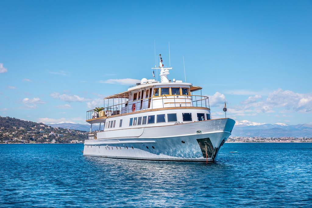 M/Y Clara One is an impressive 32m crewed wooden motor yacht developed at Chantier de L’Esterel in 1961. She features naval architecture by Petrel as well exterior design and interior styling by The A Group Monaco. With a few decades on her, this gentleman’s motor may not have the glitz and gadgetry of 21st century yachts, but if you are in the market for a classic with character, motor yacht Clara One is a far cry from bland…
