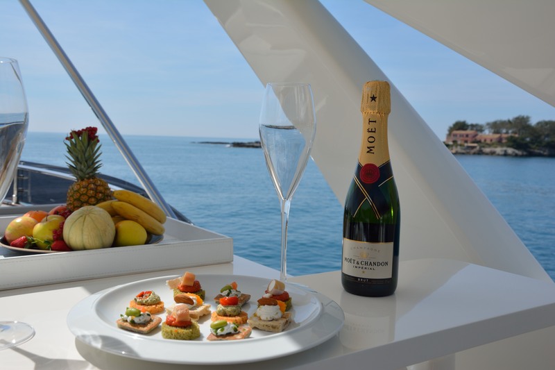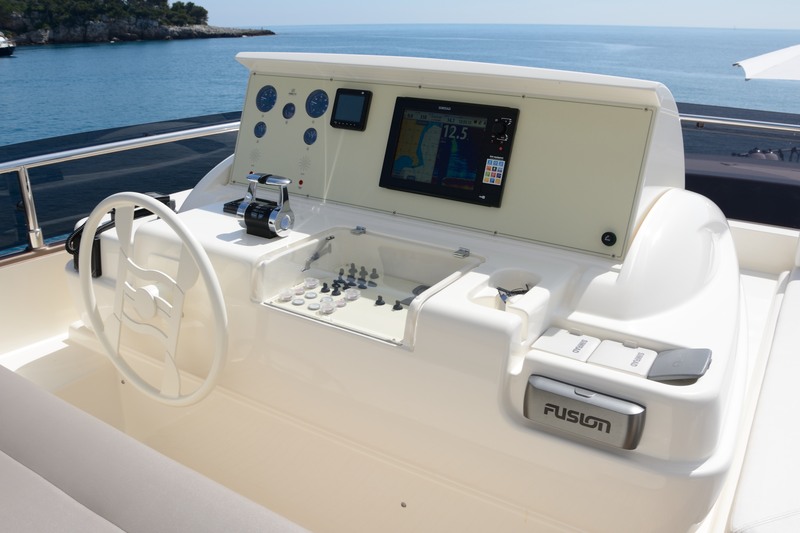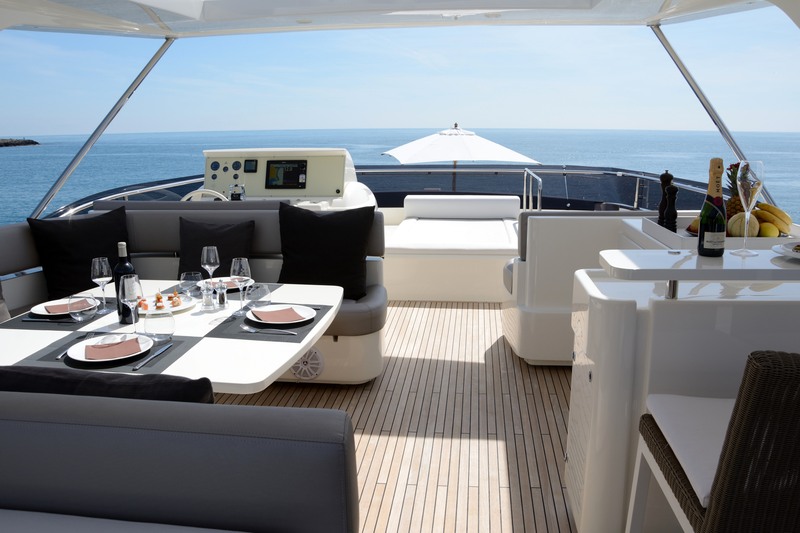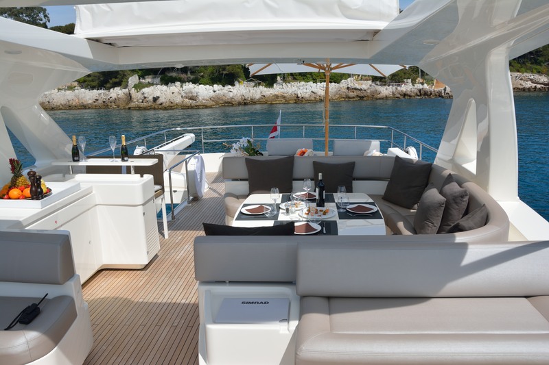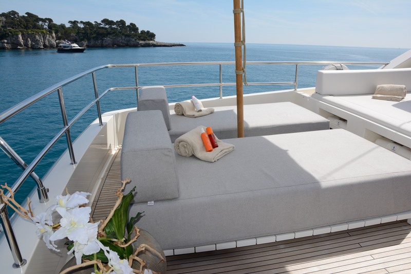 COLUMBUS A is a stunning Ferretti 800 superyacht. Living space on-board is stunning. The full-beam master suite is spacious and comfortable. Boasting gorgeous interior design along with a stunning window configuration that allows the room to fully soak in the light and awe-inspiring views that an ocean exploration offers. Along with the VIP cabin, the charming double cabin and the twin-room, a total of 8 people can comfortably sleep on this beautiful Ferretti yacht. Time spent in the airy saloon will be treasured, with the alluring seating perfectly complimented by the tasteful colour scheme, creating a tranquil environment to unwind or entertain. Large windows ensure the pace is well lit. Watch your favourite films or take a drink at the stylish bar. Rent this Ferretti superyacht and enjoy her expansive exterior space. The flybridge features a social seating arrangement and large dining table. This is the perfect place to soak in the refreshing sea air and dine alfresco style. For those who lust after bronzed skin, the sundeck at the stern of this superyacht is perfect for lounging in the deliciously warm Mediterranean rays. At sea, relaxation must be supplemented with light-hearted fun, and Columbus A’s selection of toys ensure you can revel in the joys the crystal clear water of the Med offers. Explore beneath the glimmering surface with the seabobs and the snorkelling equipment, or glide along the water on the waterskis.