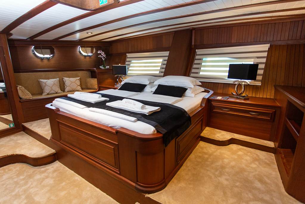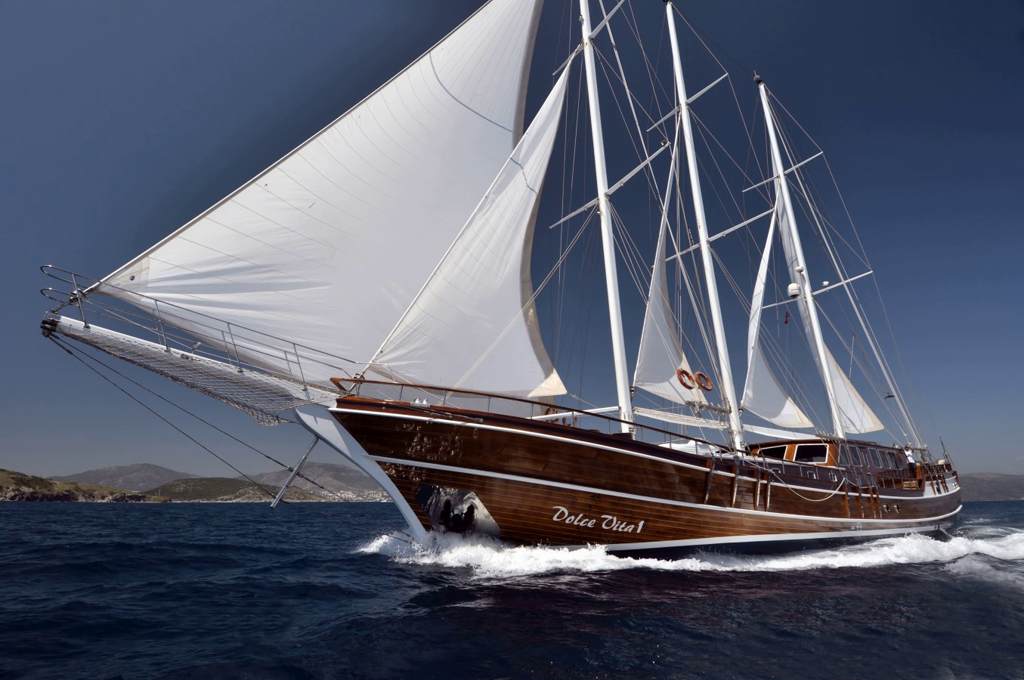 Sailing yacht DOLCE VITA was launched in 2005 by Bodrum Shipyard and refitted in 2015. She measures 34m (111,7ft) and offers accommodation for up to 10 charter guests, in 5 cabins. All the cabins have en-suite bathroom with shower tub, TV, mini bar, DVD system, push flush toilets and individual remote controlled air-conditioning (hot-cold). Finished in high-quality wood and nicely appointed with bed linen and covers, the cabins provide very elegant and inviting environment. There is enough storage…