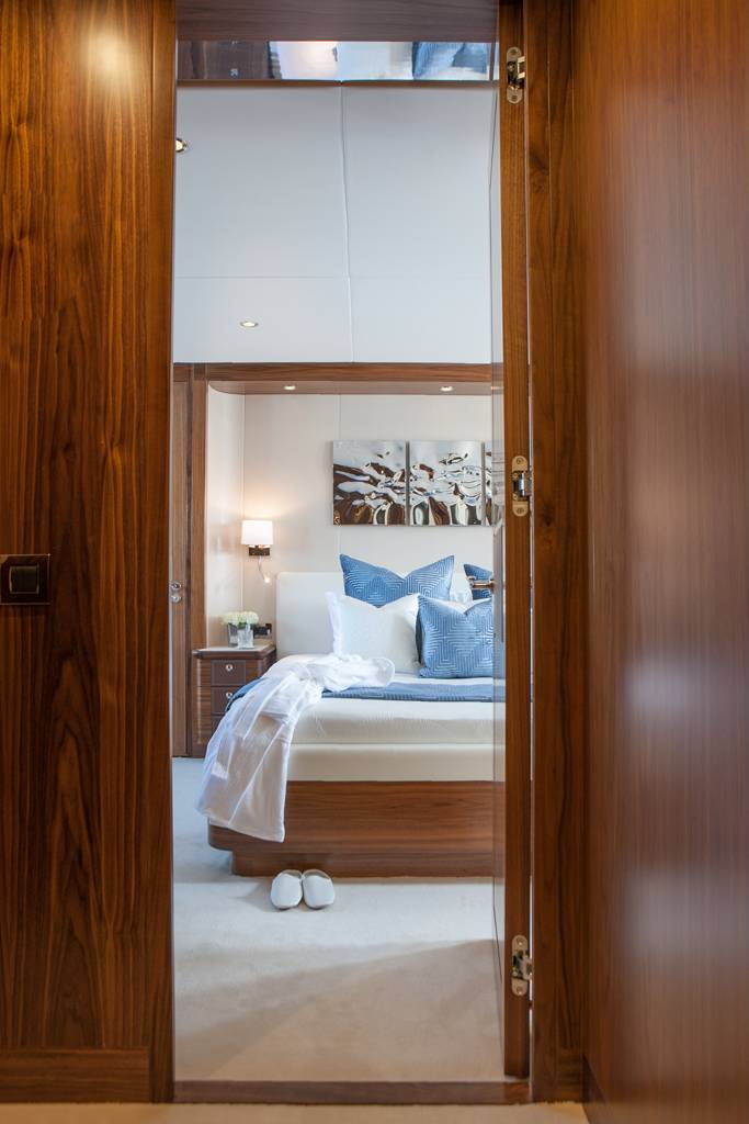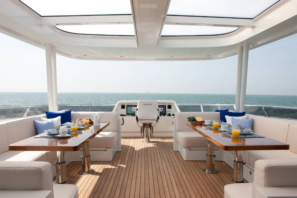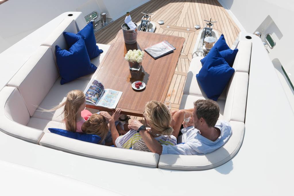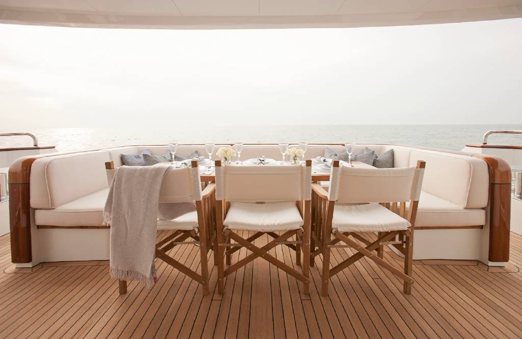 The aft section is fitted with a davit crane that launches and retrieved the yacht’s tender, and can easily be transformed into an open sunbathing area with panoramic views across the anchorage.