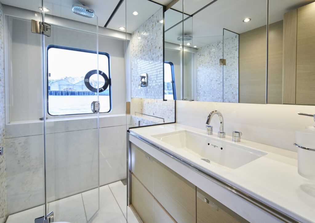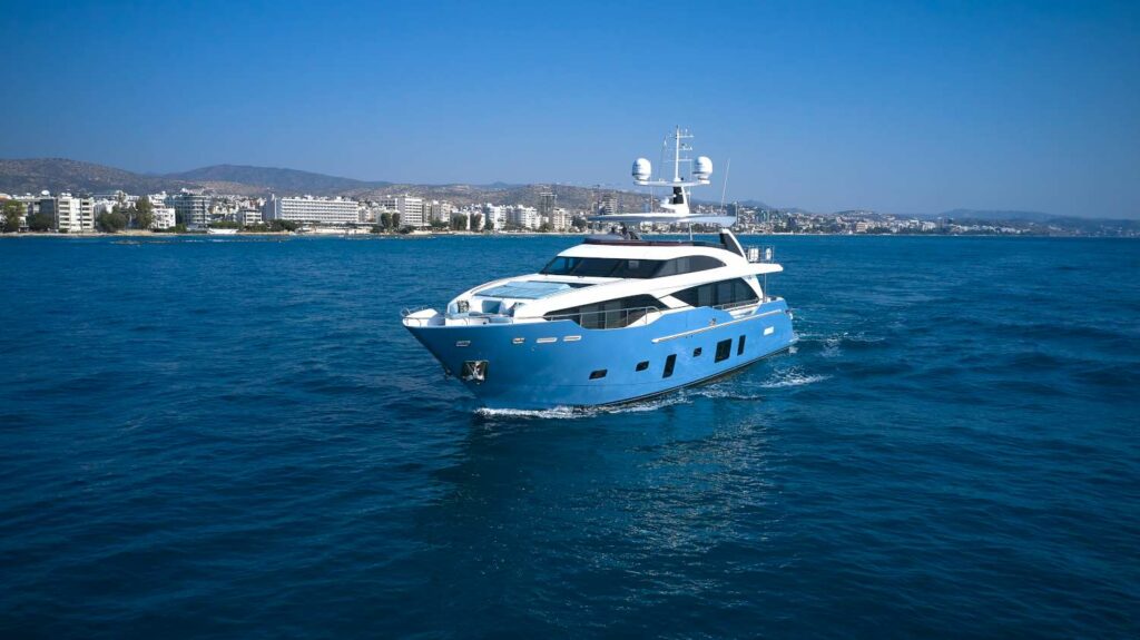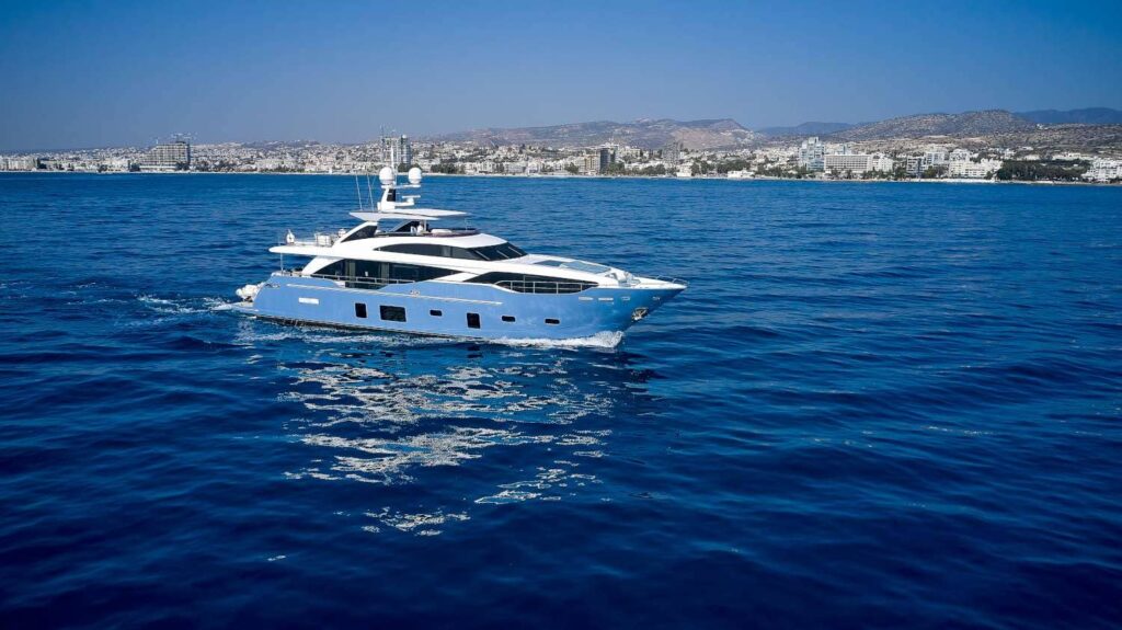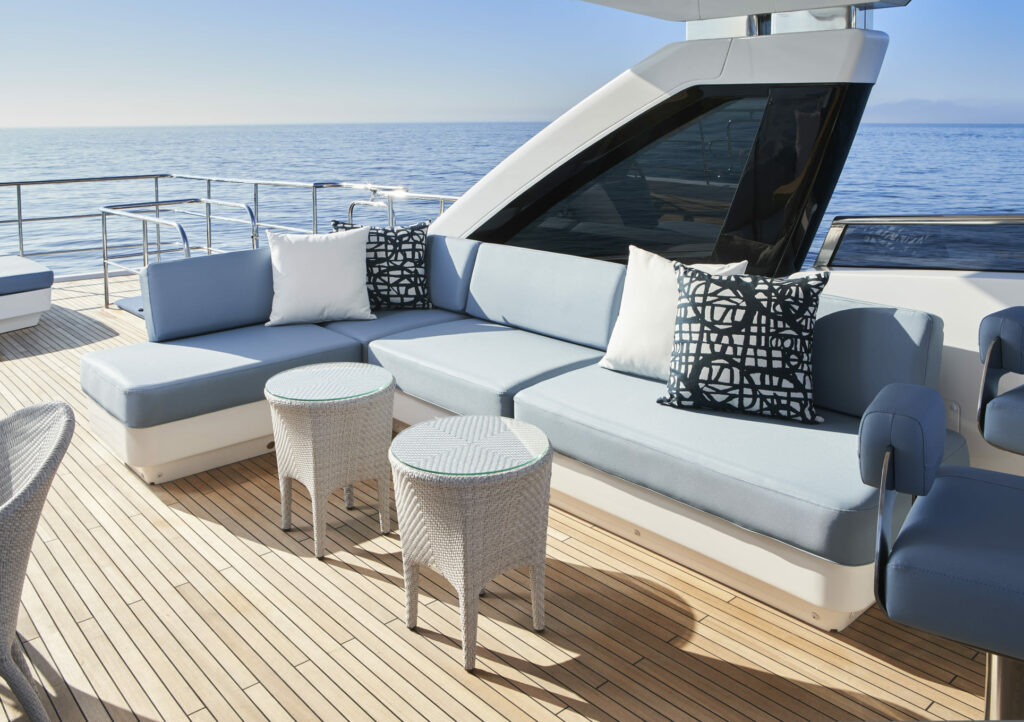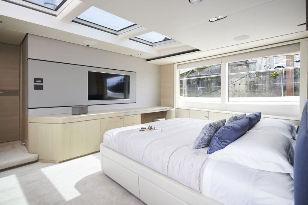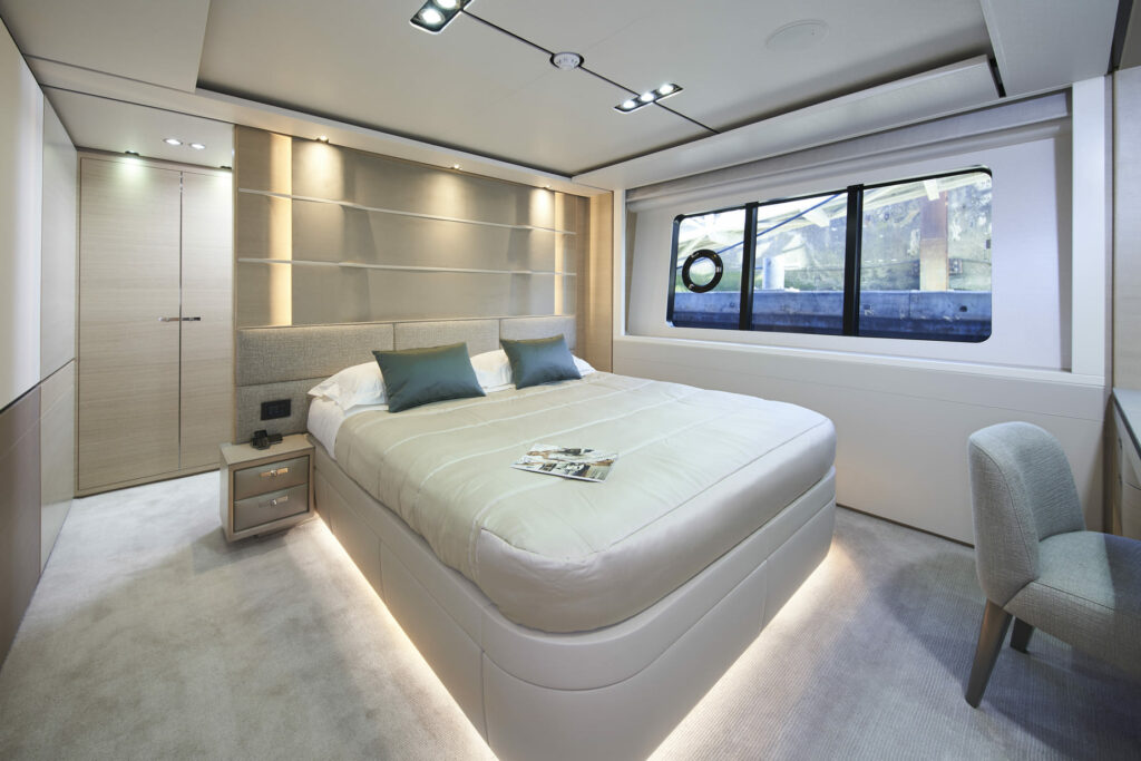 Hallelujah Yacht is a delightful revelation on charter yachts. New for 2019, the luxury motor yacht Princess 30M captures a modern, free wheeling zest for luxury sailing. The onboard decor is an inviting lighting scheme that combines off-white furnishings and stone with accents of sea blue and light wood.