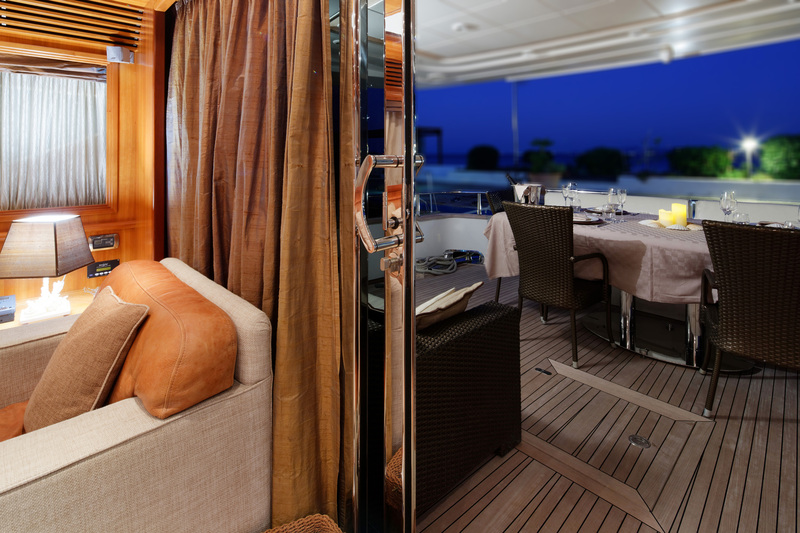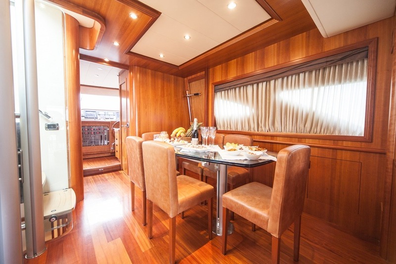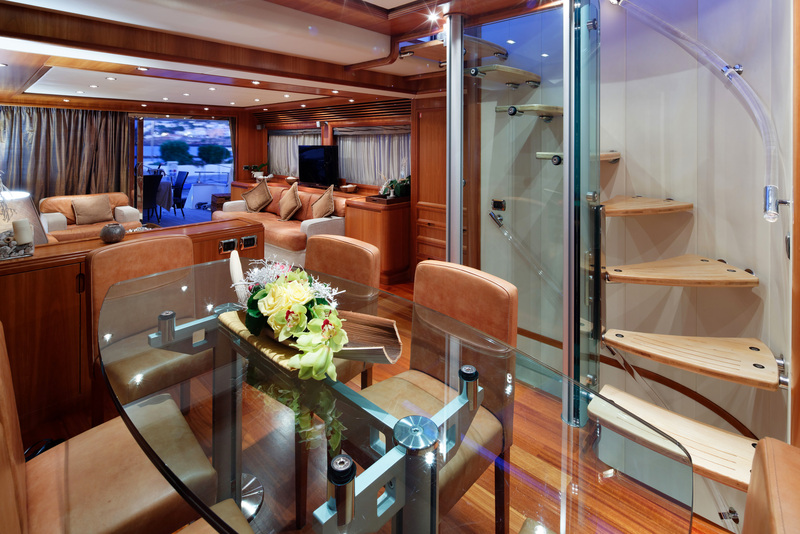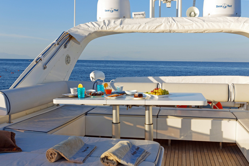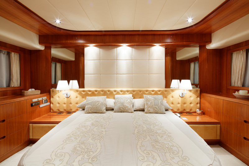 Happy Feet has a maximum speed of 33 knots, with a cruising speed of 23 knots, and you’ll glide beautifully over the crystal waters- a true taste of decadence. The superyacht has Wi-Fi connection throughout, so you’ll be able to check emails or share your experience on social media. Air conditioning keeps conditions comfortable throughout the cabins, so you’ll stay cool even on the hottest of days. No matter where you wish to explore, Happy Feet is sure to keep you and your guests happy throughout your charter vacation.