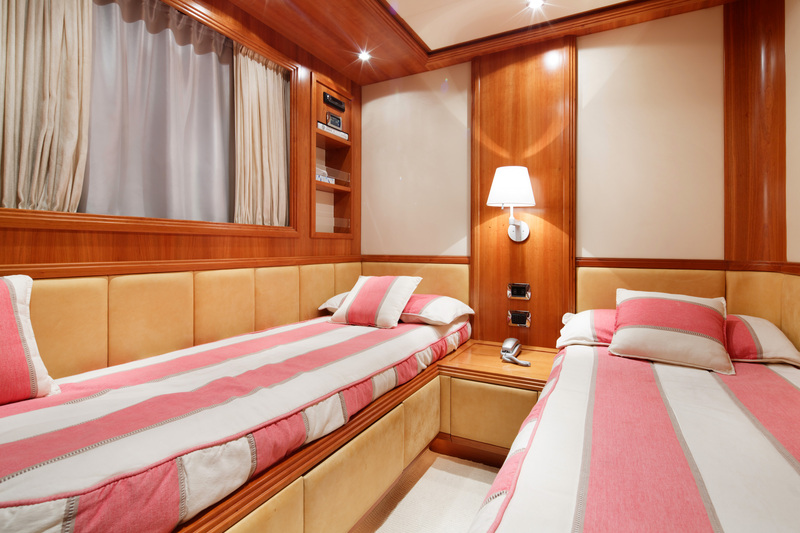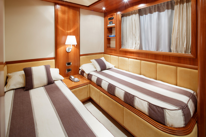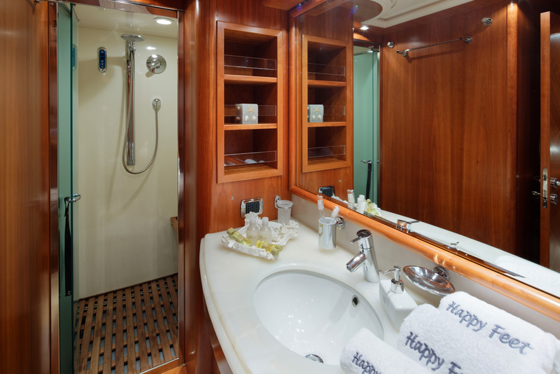 Happy Feet’s elegant, interior layout sleeps up to 8 guests in 4 rooms, including a master suite, 1 double cabin and 2 twin cabins. She is also capable of carrying up to 3 crew members onboard to ensure you and your guests enjoy a luxury charter…