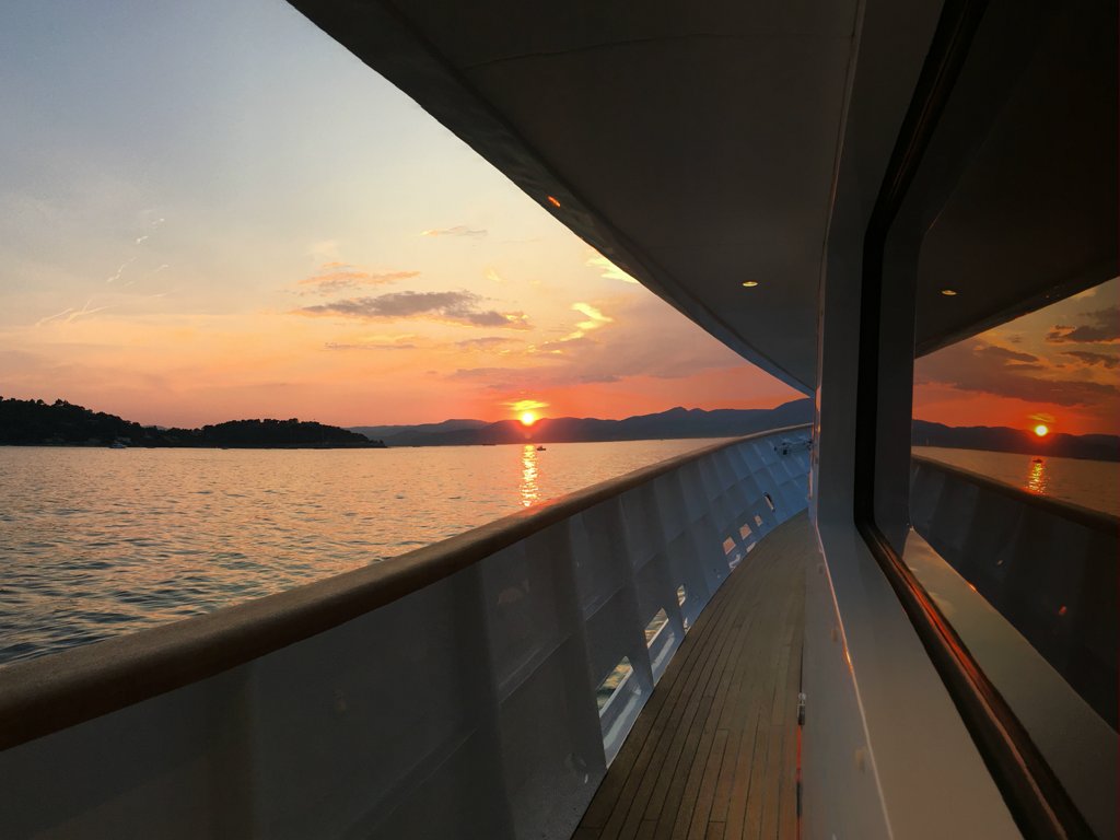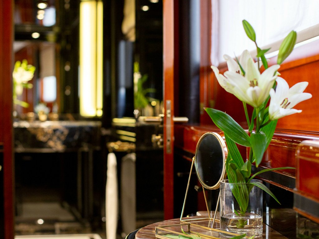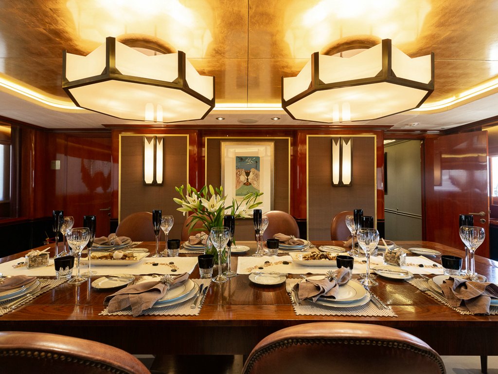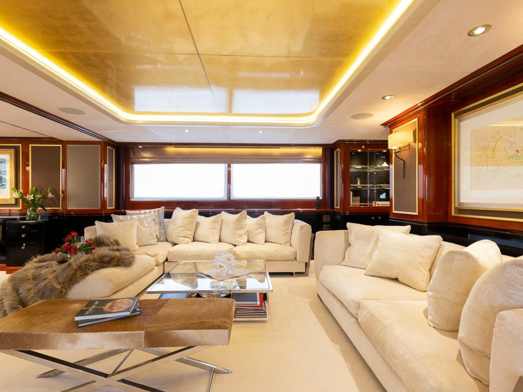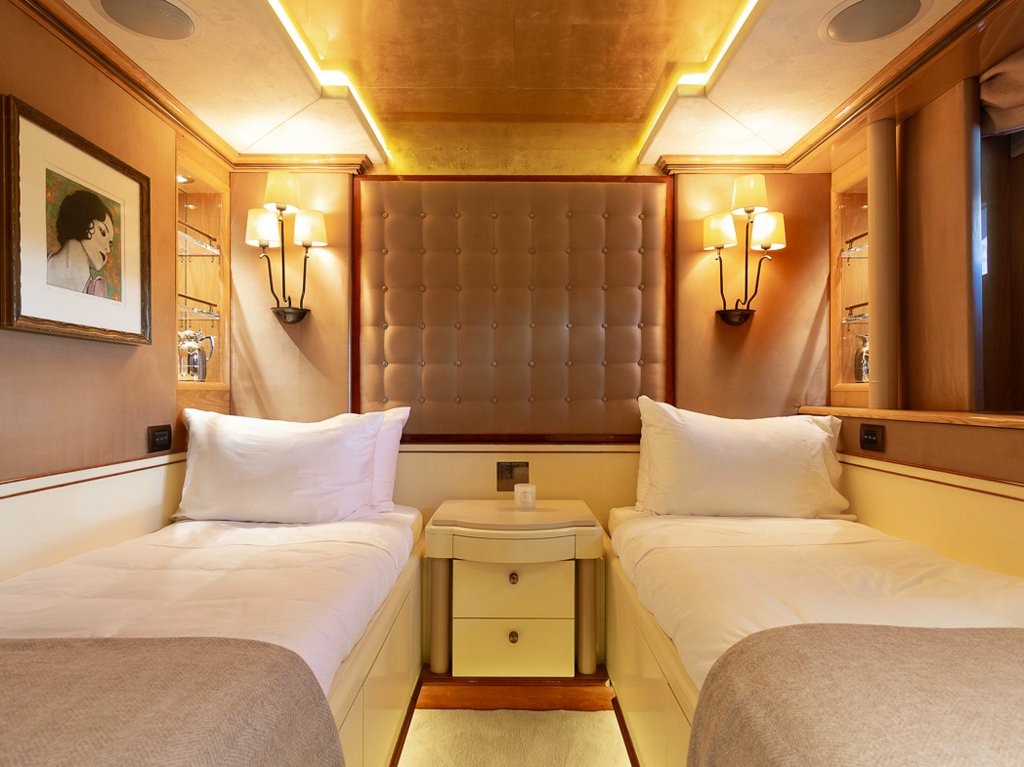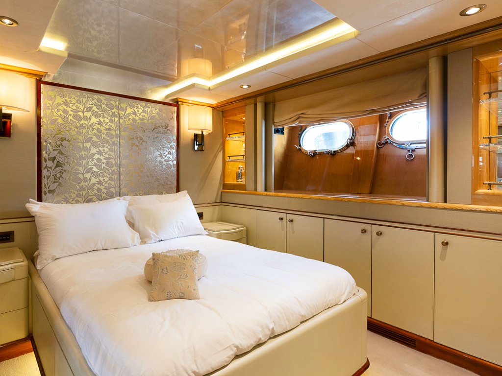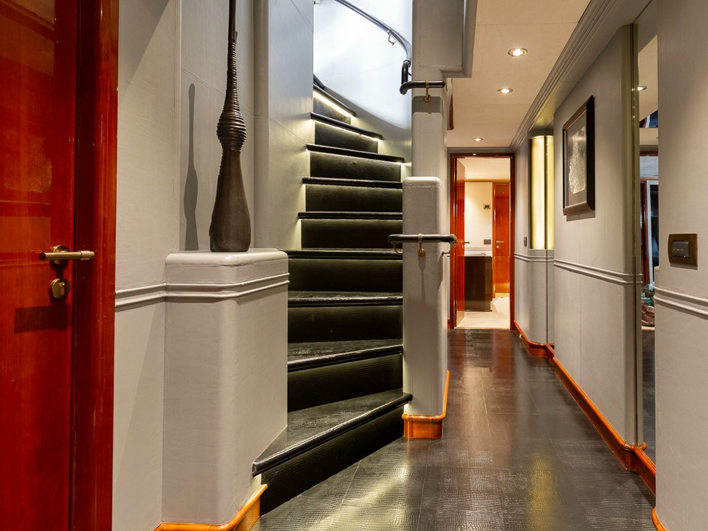 Il Sole’s interior configuration has been designed to comfortably accommodate up to 12 guests overnight in 6 cabins, comprising a master suite/ VIP stateroom, 2 double cabins and 3 twin cabin. It is also capable of carrying up to 10 crew onboard to ensure a relaxed luxury yacht experience.