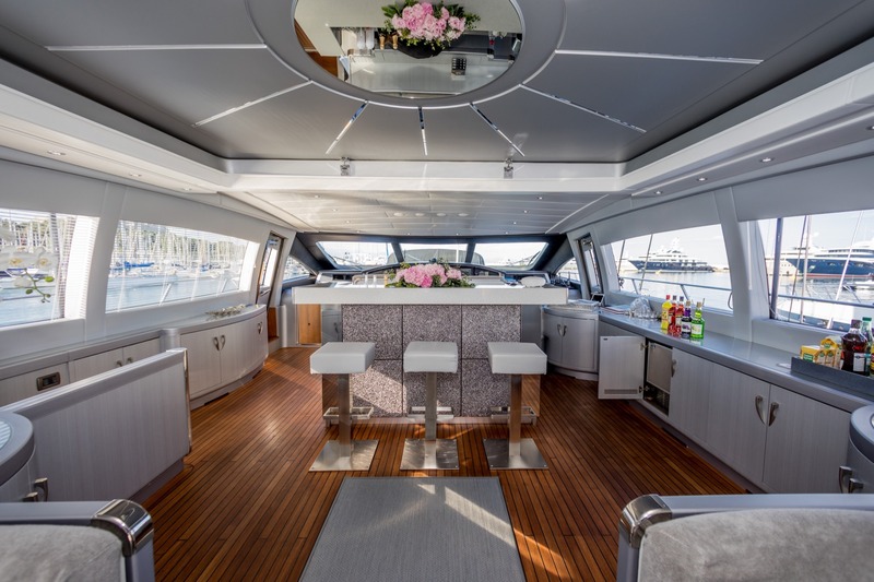 You will appreciate her elegant lines and the interior that combines a modern and sophisticated atmosphere, with plenty of natural light during the day and refined illumination. With a modern sound system, this exclusive yacht is designed to bring you amazing experiences during all kind of celebrations.