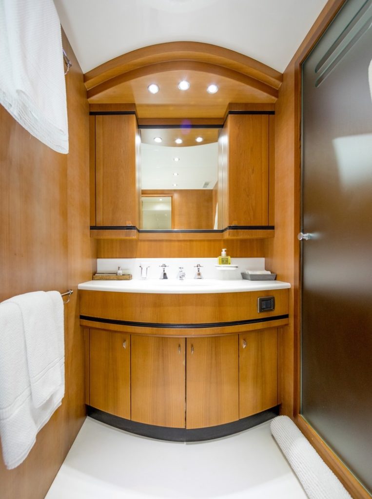 These amenities make her a perfect yacht for enjoying lively moments with your friends and family. Guests can also enjoy everything the sea and coastline has to offer, with plenty of water toys at their disposal. She is built with GRP hull and GRP superstructure. She has a cruising speed of 26 knots, a maximum speed of 36 knots and a range of 420nm from her 12,000litre fuel tanks, she is the perfect combination of performance and luxury. Wi-Fi connection is available throughout, so you’ll be able to stay connected while you’re away, great for business, checking emails or sharing your experience on social media. Toys onboard include 1 x Jet-Ski and 2 x Kayaks, ideal for keeping guests entertained as you sail.