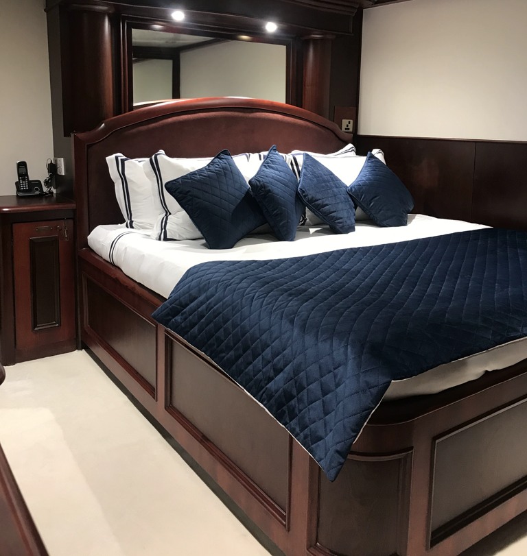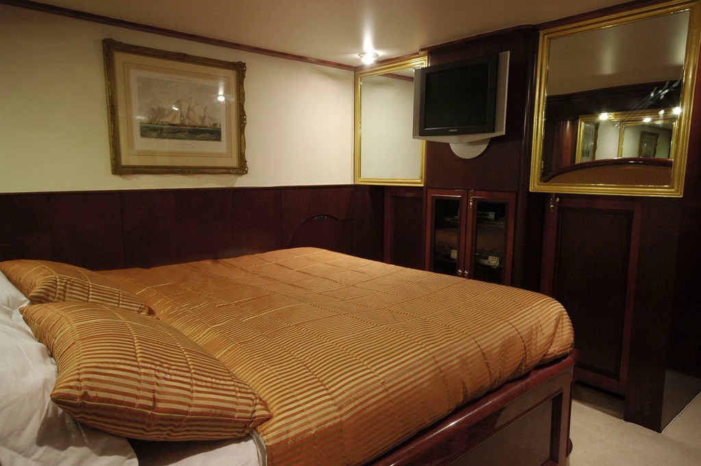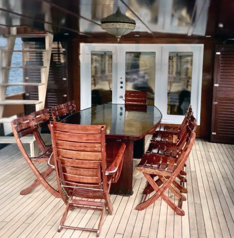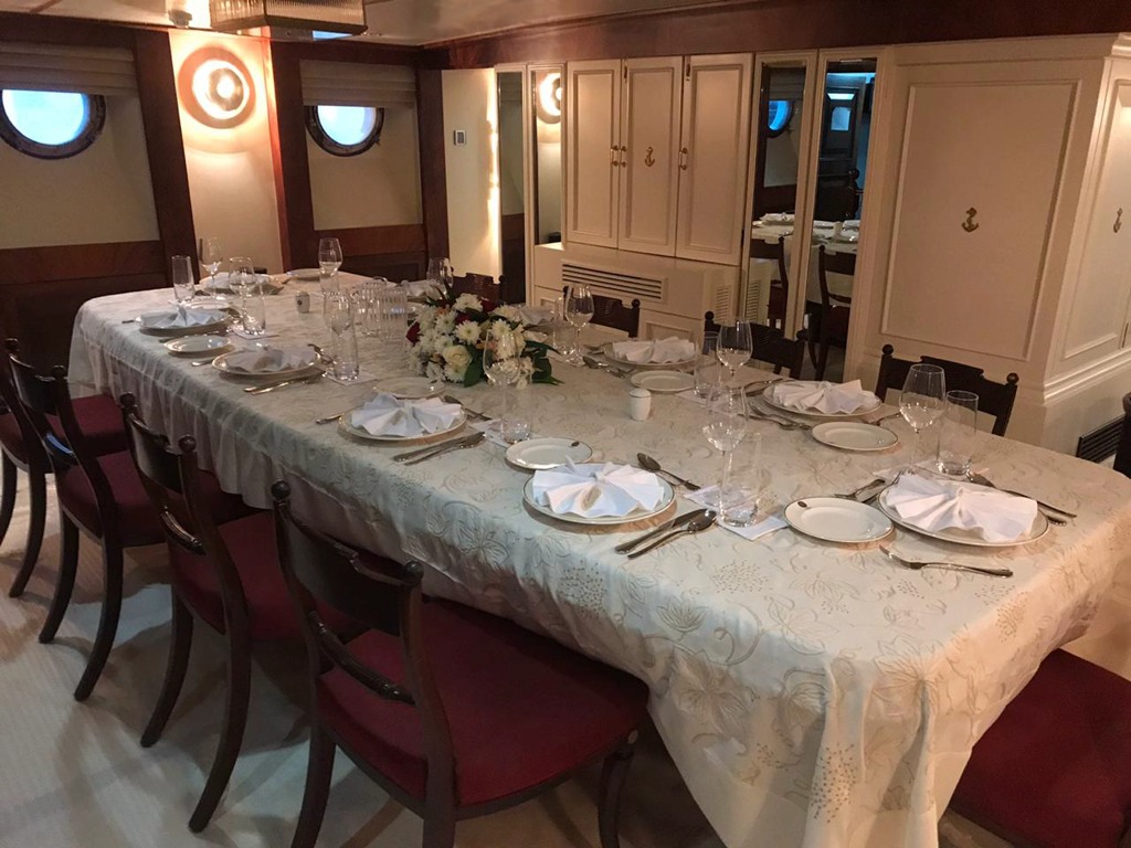 There’s a fabulous dining space with a gorgeous table, ideal for those special occasions. In addition, she is furnished to a high standard, and the attention to detail displayed on this vessel is exemplary. She is built with a steel hull and Aluminium / Teak superstructure, and has a cruising speed of 10 knots, a maximum speed of 12 knots and a range of 3,500nm from 33,000litre fuel tanks.
