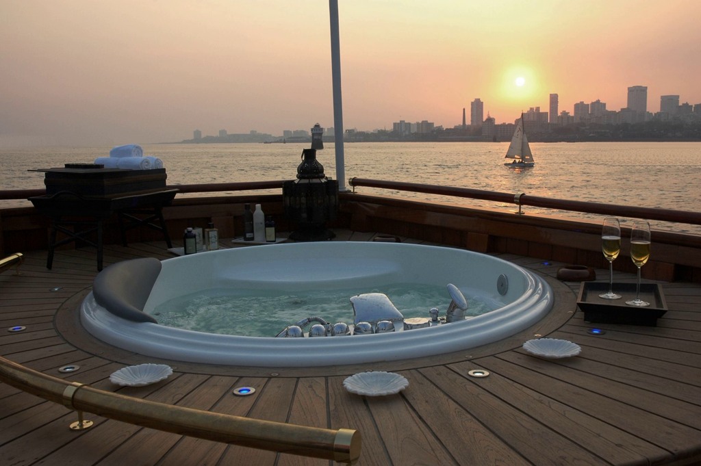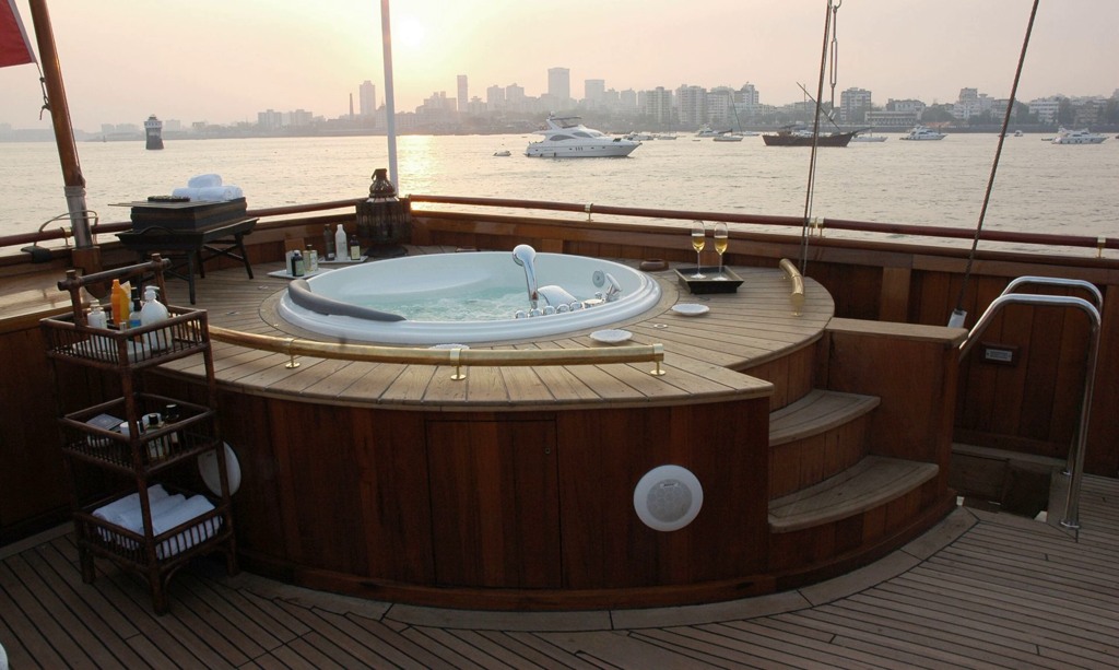 Her leisure and entertainment facilities make her perfect for entertaining friends and family on your charter vacation. There’s ample space for enjoying alfresco lunches, delicious dinner on deck, or simply lounging in the sunshine and topping up your tan. You’ll love the gorgeous jacuzzi on deck, and its positioning ensures you’ll be able to take in the magnificent views as you sail.
