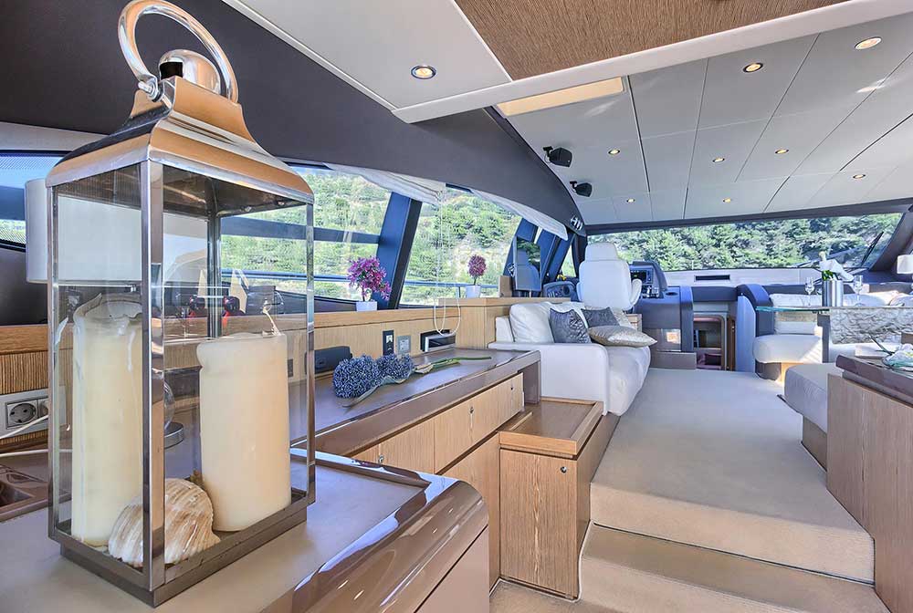 M/Y KIMON Ferretti 620 features spacious areas for socializing, both on the main deck and externally.