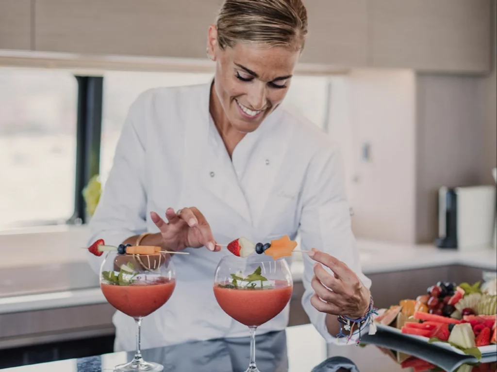 MY Lady M has 4 well-appointed guest cabins, comfortablysleeping 8 guests, with a captain, chef andstewardess to ensureall your needs are taken care of.