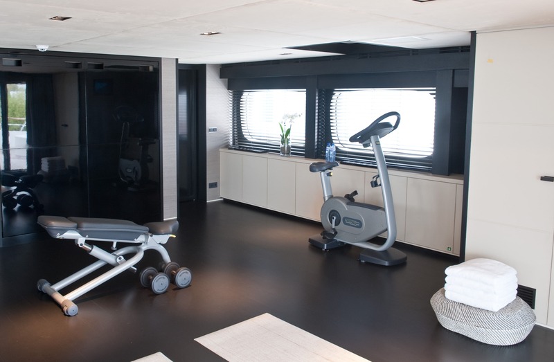 M/Y LATITUDE (features most modern design and equipment which includes a skylounge based GYM and plethora of water sports equipment as well as 2 x vespa / scooters and 4 bikes for cycling enthusiasts. Her super yacht crew of 7 including the captain provider luxury yacht charters in the Mediterranean, including the Balearics