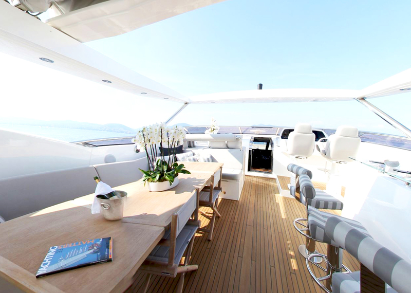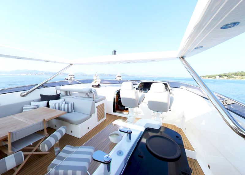 MAORO delivers it all. This stunning vessel performs a cruising speed of 17 knots and tops out at 26 knots making her the ideal platform to enjoy the French Riviera, Italy as well as Greece and Turkey in the East Med. With a fantastic crew of 5 and a selection of water toys Sunseeker yacht MAORO is perfect for families, couples and business events. Her Captain Pierre and his crew, strong of more than 10 years experience in the yachting industry, will make your cruise a unforgettable moment.