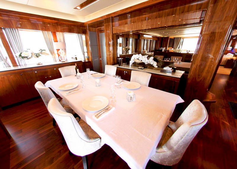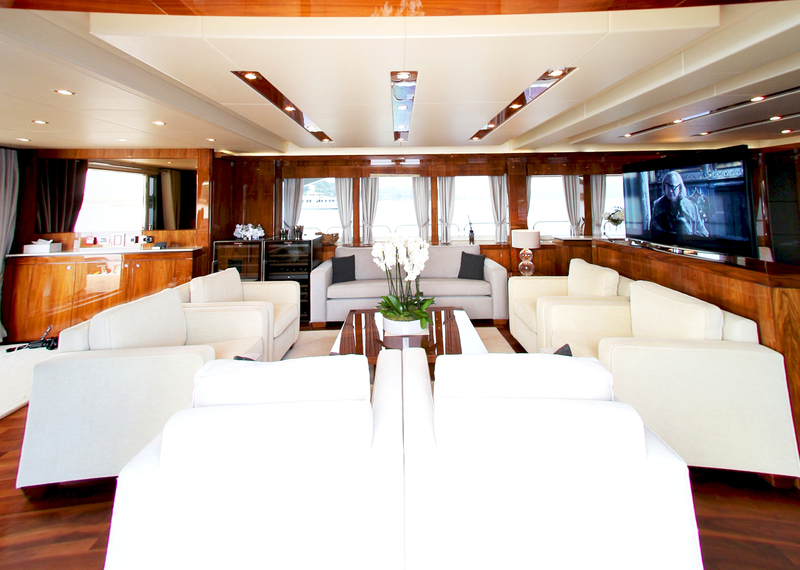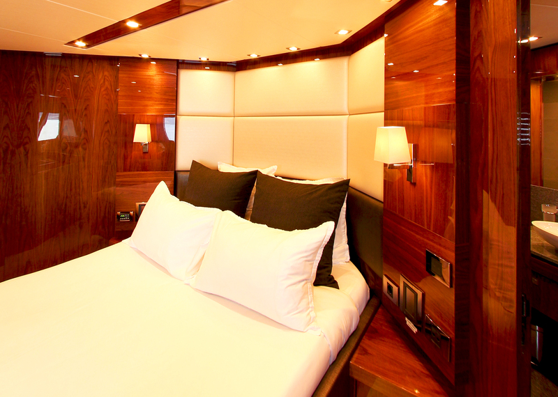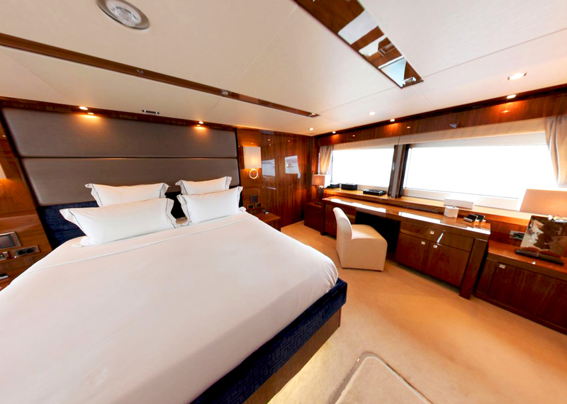 Entirely built of GRP she has been designed by Sunseeker responsible for interiors and exteriors. She is the best combinaison between sport and semi-displacement Yacht for lover or family trip, all including the highest level of luxury. Her volume in every room in a immaculate condition will upgrade your level of luxury. M/Y Sunseeker offers accommodation for up to 10 guests sleeping in 5 luxurious rooms comprising a master cabin on the main deck and fourth guest cabins on the lower deck. Fitted with all the extras one would expect to find on a 115-footer including balcony in the saloon, stabilization systems, hard top and many more custom extras like a jacuzzi on the flybridge, gym equipment, long range tanks, nav upgrades and HD11 sat TV system,