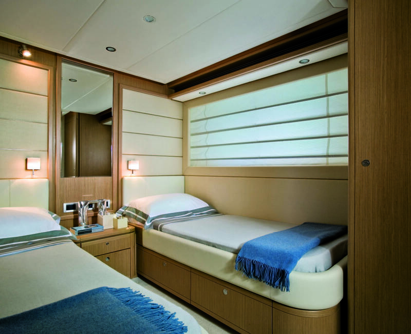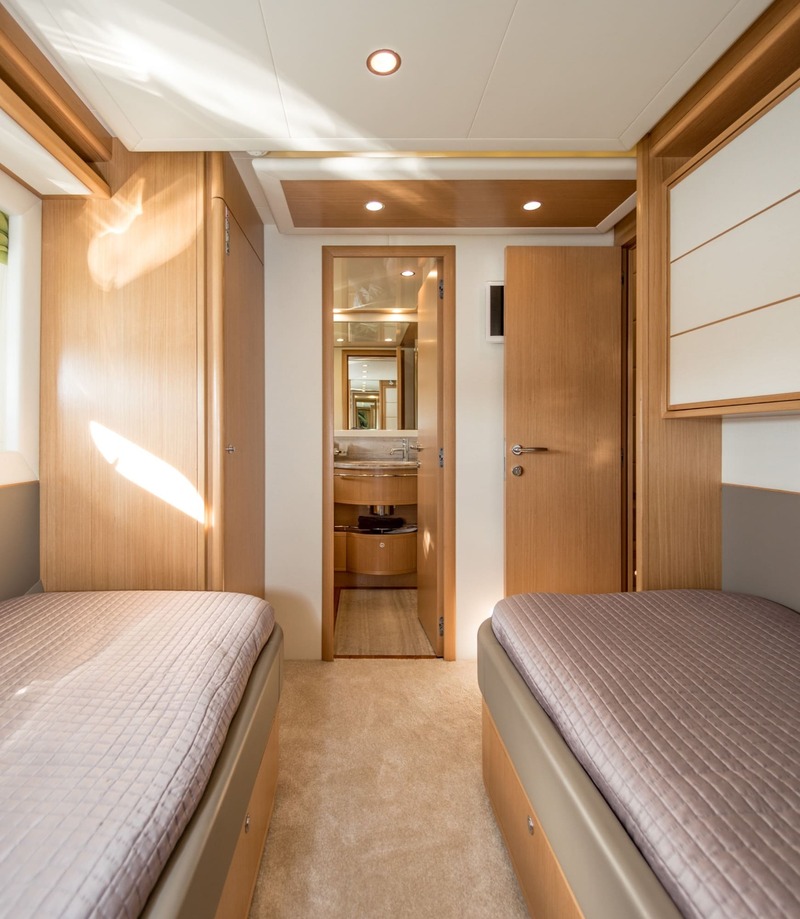 Maxi Beer’s interior layout sleeps up to 8 guests in 4 rooms, including a master suite, 1 VIP stateroom, 2 twin cabins and 2 pullman beds. She is also capable of carrying up to 3 crew onboard to ensure a relaxed luxury yacht experience.