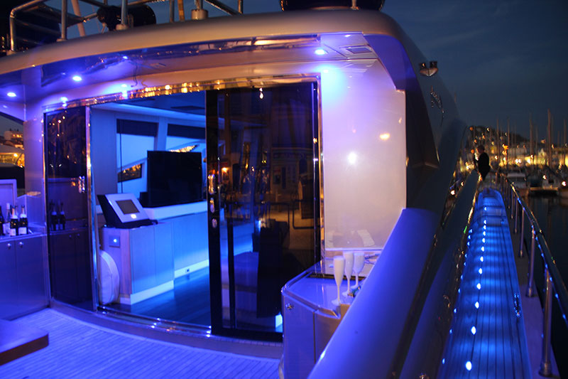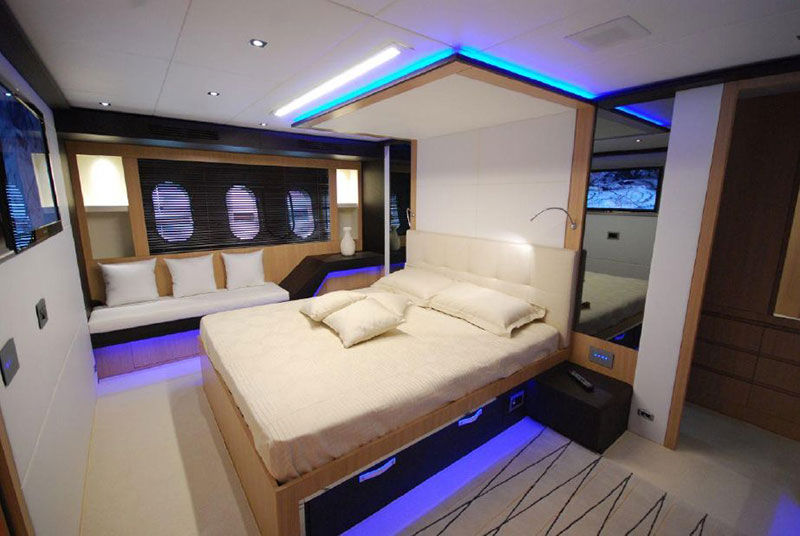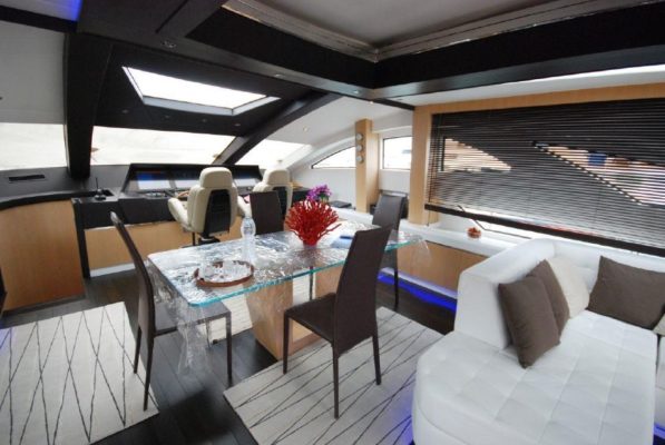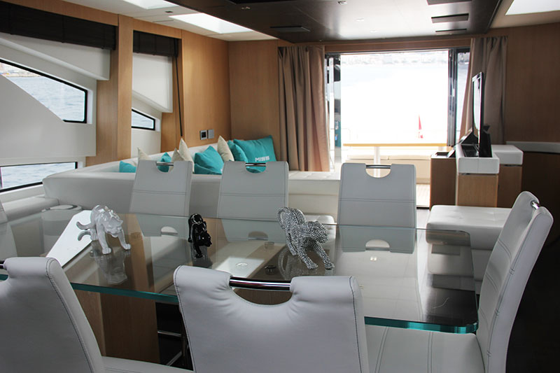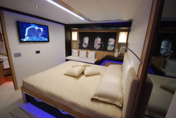 Below deck are 4 spacious, air conditioned cabins, each decorated with a keen eye for tranquility and light. The master suite boasts a large HD television and gentle LED lights to add to it’s modern ambiance. There are four bathrooms on-board. The living space on this Jaguar 80 yacht charter is generous and tasteful in design, ensuring a comfortable time at sea. Ample space, chic design and a charming, experienced crew make this Jaguar 80 yacht charter an experience to treasure.