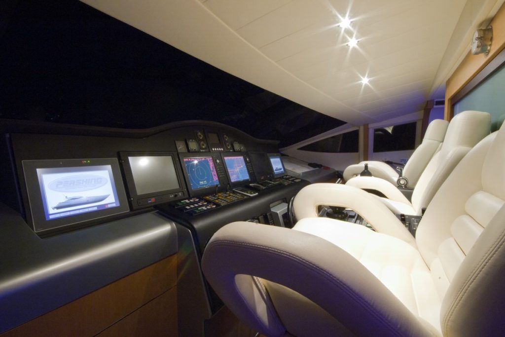 Part of the Pershing 115 series, this super yacht has impressive performance – triple water jet propulsion MTU engines generating 12,500 hp give her a maximum speed of 55 knots and cruising speed of 40 knots. Traveling at 45 knots she has a range of 300 nautical miles. She is one of the finest Pershing 115 ever built & features the 5600hp Gas Turbine on top of 2 MTU 16V4000 engines powering Kamewa Water Jets. Hull number 03…