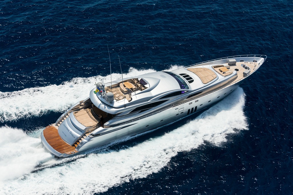 Part of the Pershing 115 series, this super yacht has impressive performance – triple water jet propulsion MTU engines generating 12,500 hp give her a maximum speed of 55 knots and cruising speed of 40 knots. Traveling at 45 knots she has a range of 300 nautical miles. She is one of the finest Pershing 115 ever built & features the 5600hp Gas Turbine on top of 2 MTU 16V4000 engines powering Kamewa Water Jets. Hull number 03 of the Pershing 115 serial. She is also the one built with the highest standards. With only two owners since new and permanent improvements she is today the best opportunity of the market .