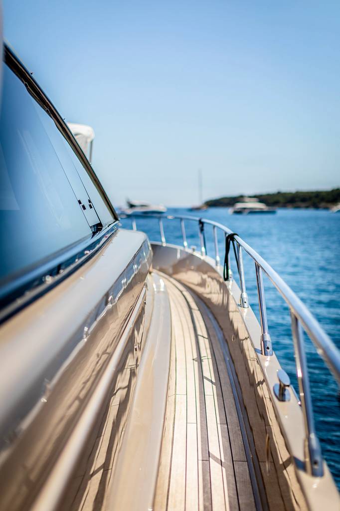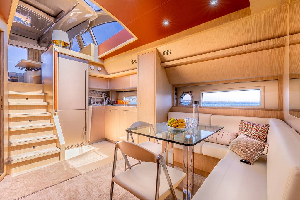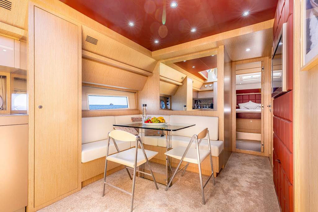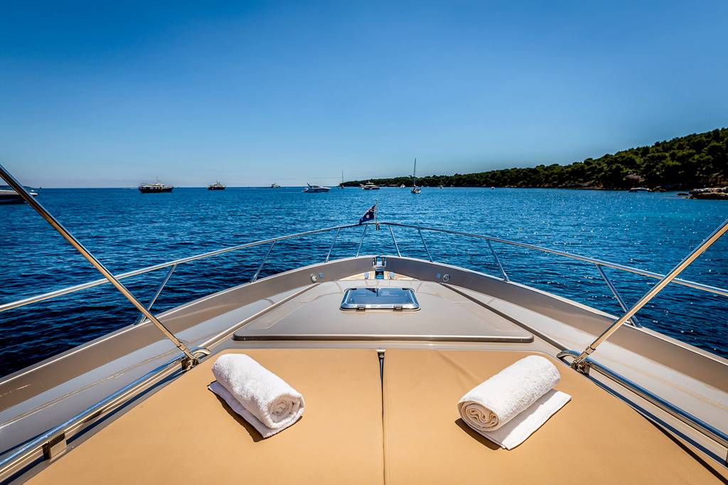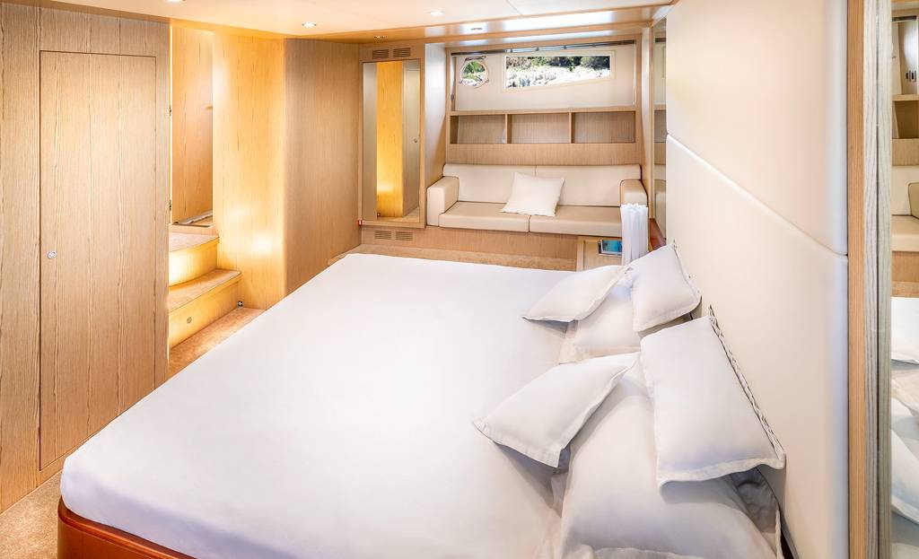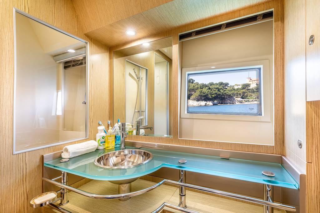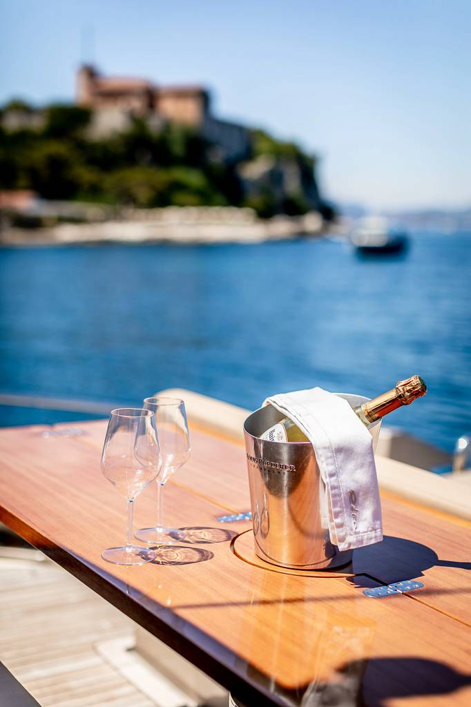 The foredeck has a broad sunbed where the group can rest in the sunshine and enjoy uninterrupted views.The lower deck hosts the crew accommodation in the stern, the guest accommodation forward and amidships with the galley and breakfast area opposite the twin cabin. She is the perfect solution for your charter on the French Riviera. Jump onboard and live the dream.