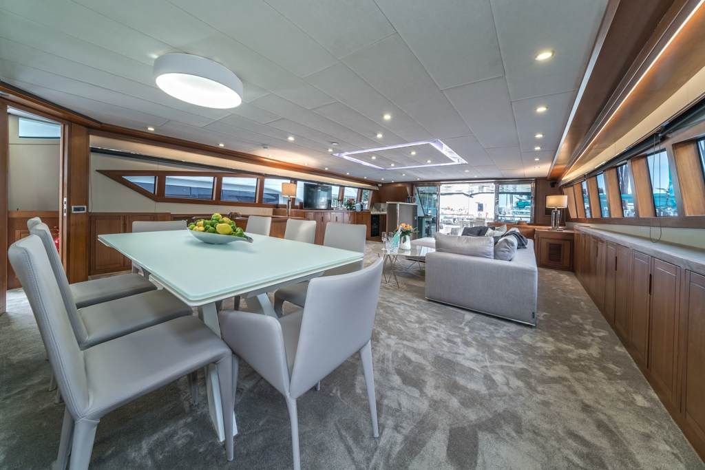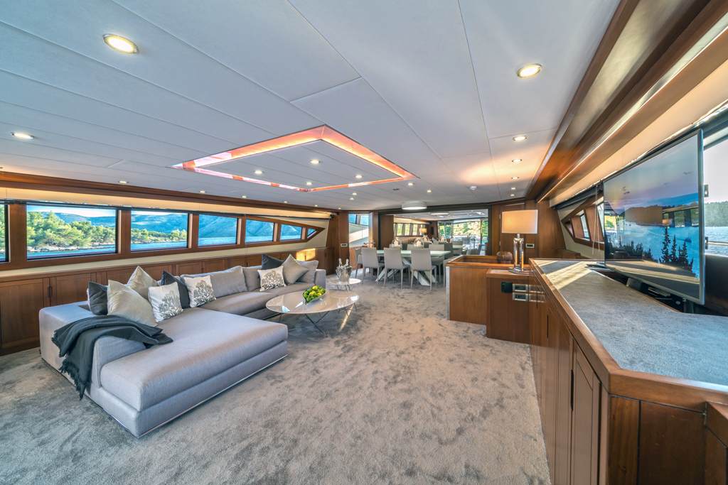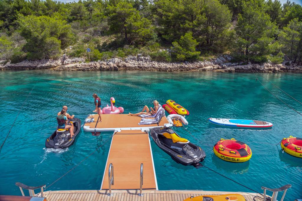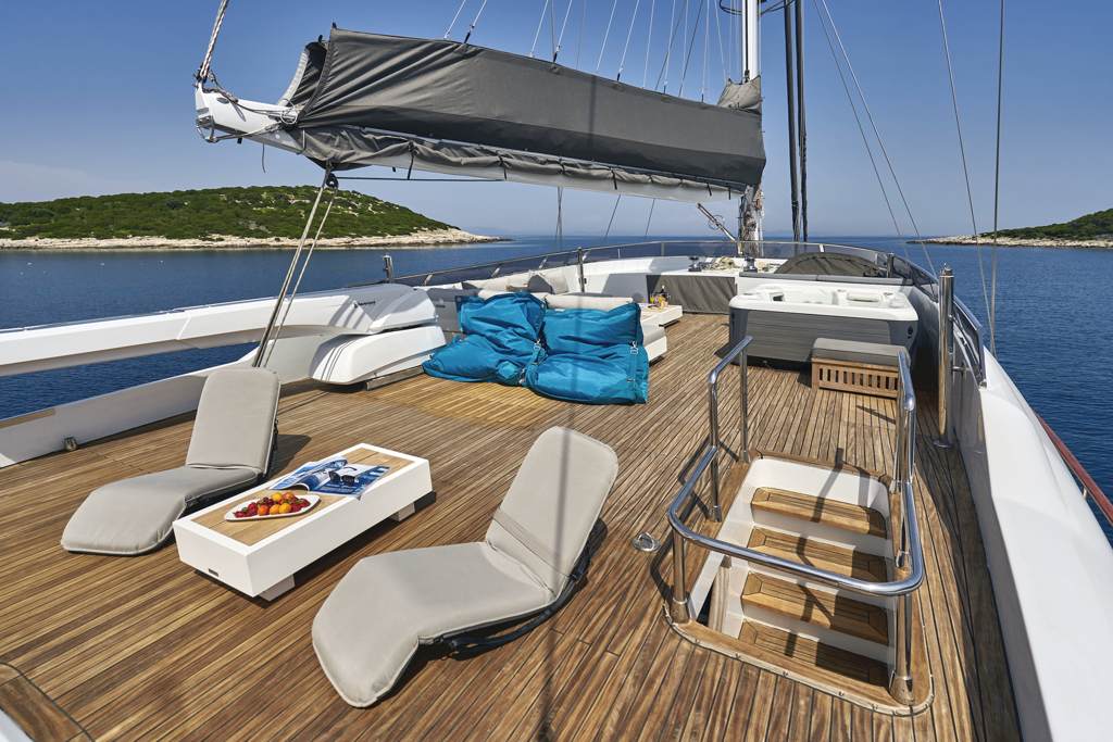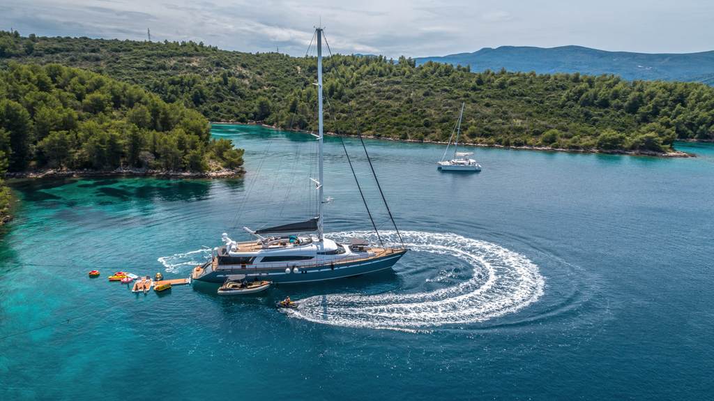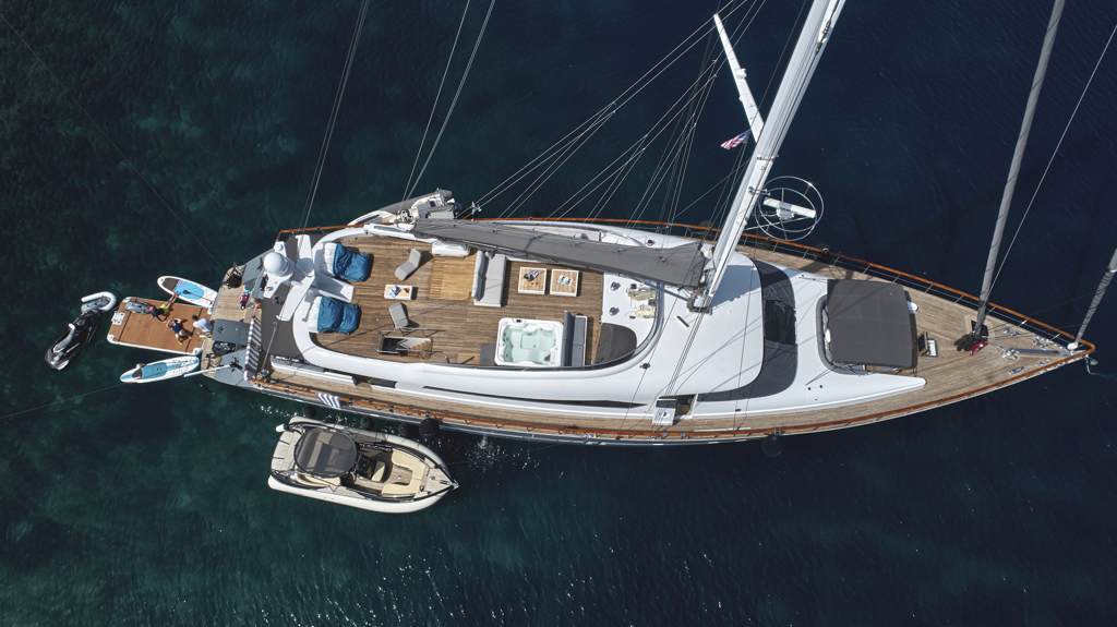 SAN LiMi does not rely on strong winds and can get under way whatever the conditions. Her impressive leisure and entertainment facilities make her an ideal yacht on which to socialize with and entertain family and friends. The yacht has an impressive selection of water toys and a large inflatable sundeck area that attaches to the stern, providing a fantastic sunbathing area and playground.