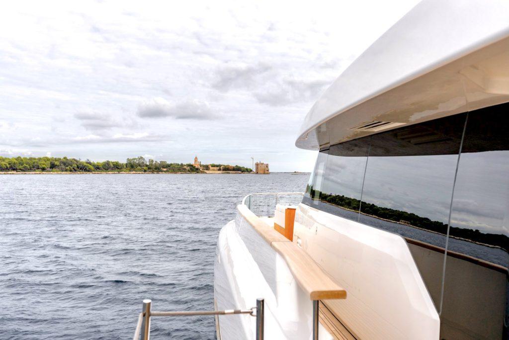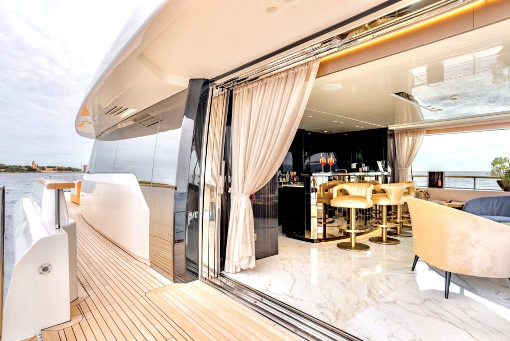 Offering more space, comfort and flexibility of use she guarantees a view of the sea from both sides creating a perfect indoor-outdoor connection.