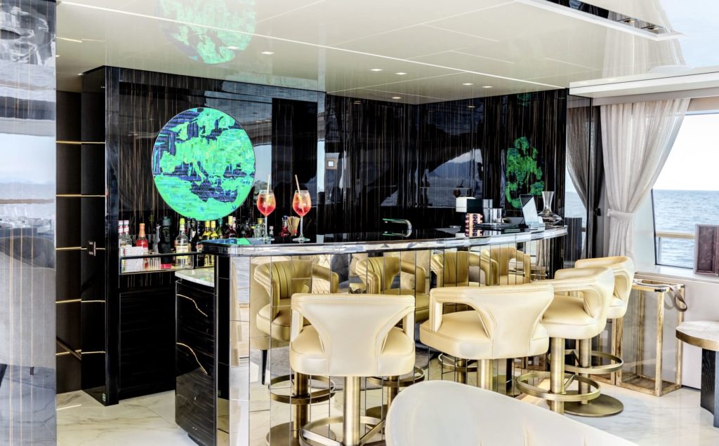 But the spearhead of this Sanlorenzo SD118’s innovation is, thanks to Bernardo Zuccon’s intuition, an upper deck featuring an asymmetrical configuration previously only applied to the SL line.