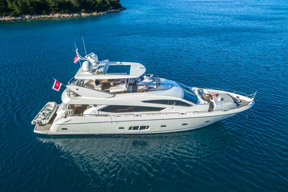 M/Y SPIRIT OF THE SEA is a custom built Sunseeker. 24.4m motor yacht was launched in 2011 and refitted in 2017. She accommodates 8 guests in 4 luxury appointed cabins. All the staterooms are equipped with necessary facilities for guests to feel comfortable during a yacht cruise in the Adriatic or Italy, island hopping in Greece or sailing the Bay of Kotor.