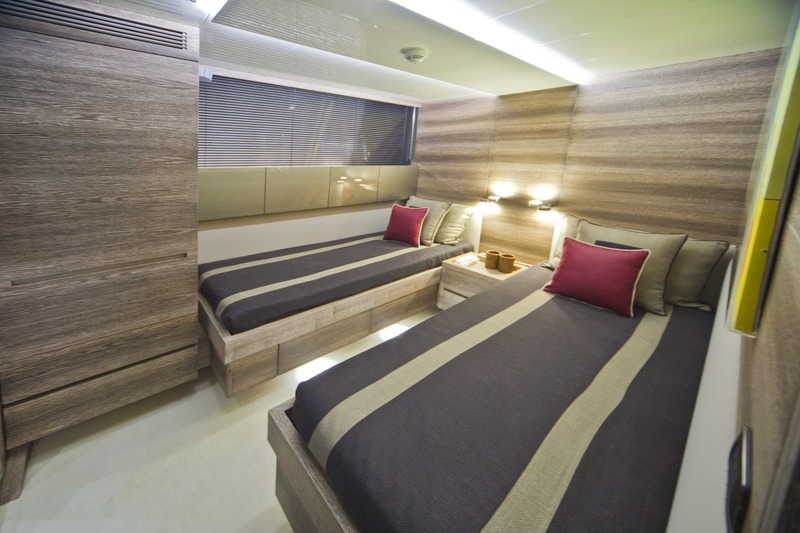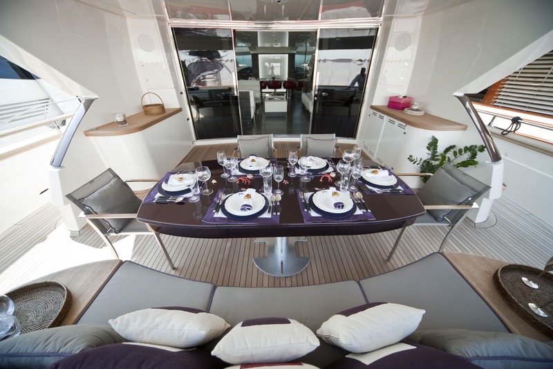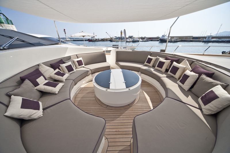 Wide living areas either inside or on deck. She features a modern design and a fast hull that reach a top speed up to 40 knots.
